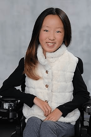 Sophie Kim is a young actor with Ullrich congenital muscular dystrophy. She uses a wheelchair and plays characters who also use a wheelchair. This gives kids and families a true picture on screen. Sophie speaks at schools and events to encourage kids to follow their dreams and to ask for access without shame.