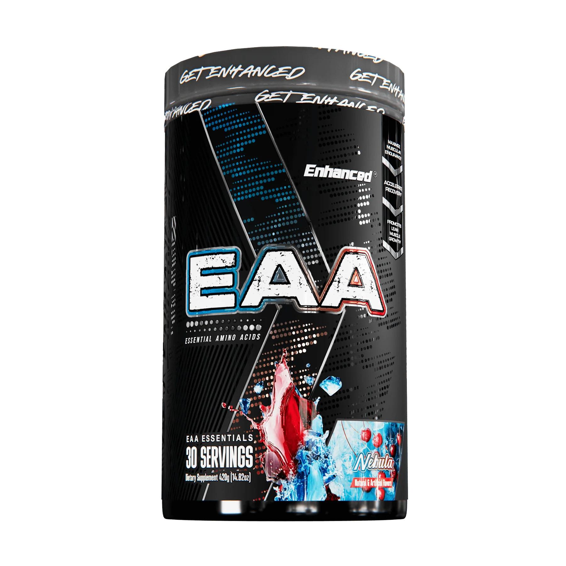 Enhanced EAA is a complete essential amino acid supplement formulated to fuel recovery, muscle growth, and performance. It provides all nine essential amino acids, including BCAAs in the optimal 2:1:1 ratio, for a full-spectrum approach to muscle repair and endurance.