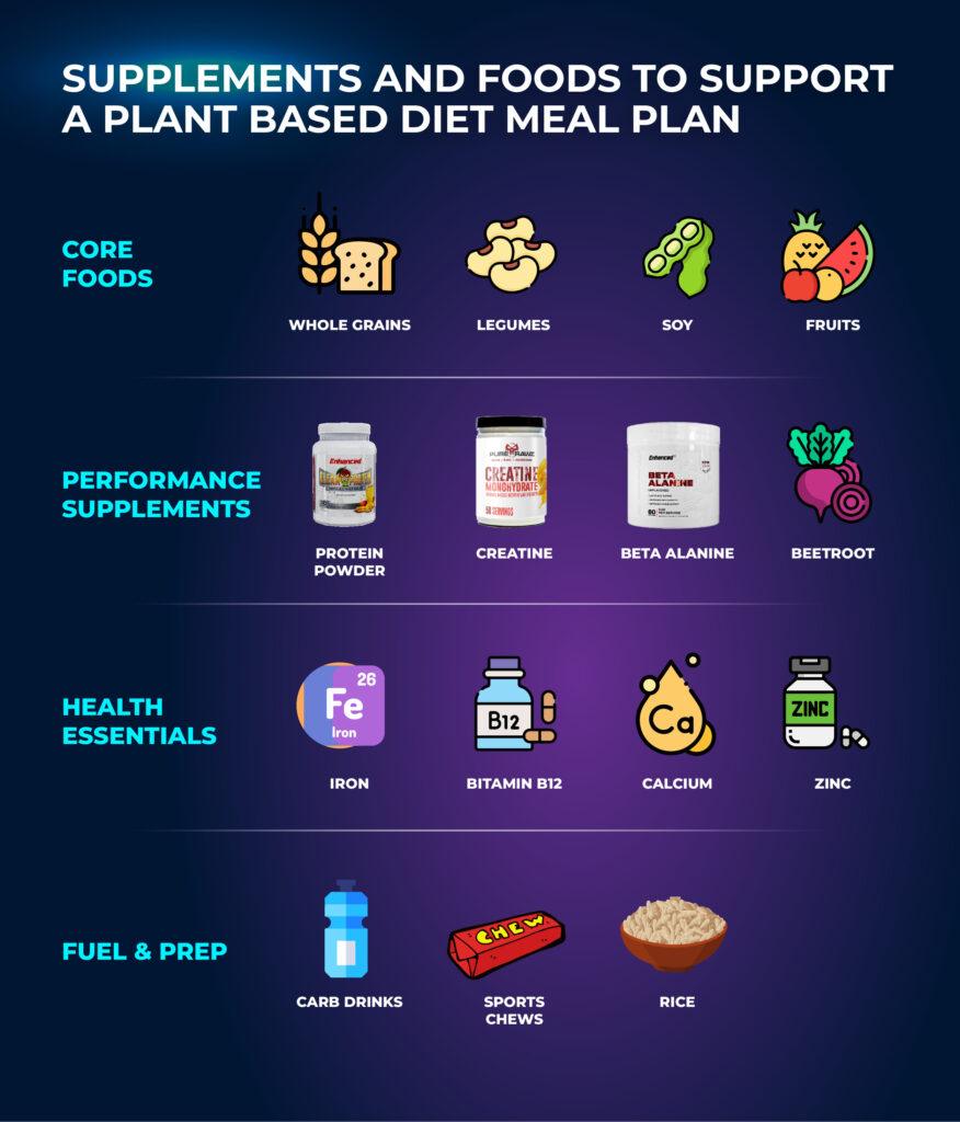식물성 식단 식사 계획을 지원하는 보충제와 식품