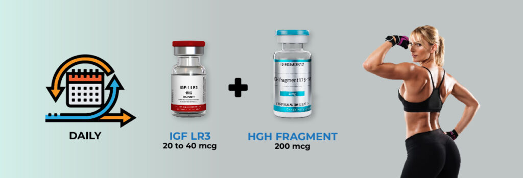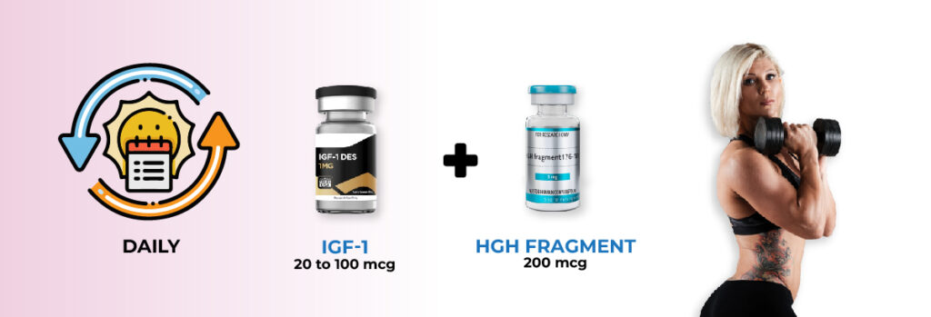 이 목적을 위해 권장되는 복용량은 다음과 같습니다: HGH 프래그먼트는 하루 200mcg, IGF-1는 하루 20~100mcg.