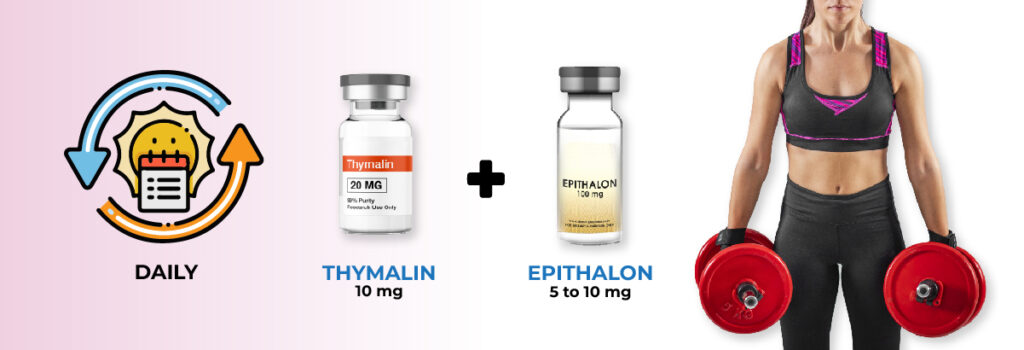 두 펩타이드는 함께 사용할 경우 항노화와 신체 전반의 건강 유지에 매우 효과적인 조합으로 평가됩니다. 권장되는 복용량은 다음과 같습니다: 에피탈론은 하루 5~10mg, 티말린은 하루 10mg.