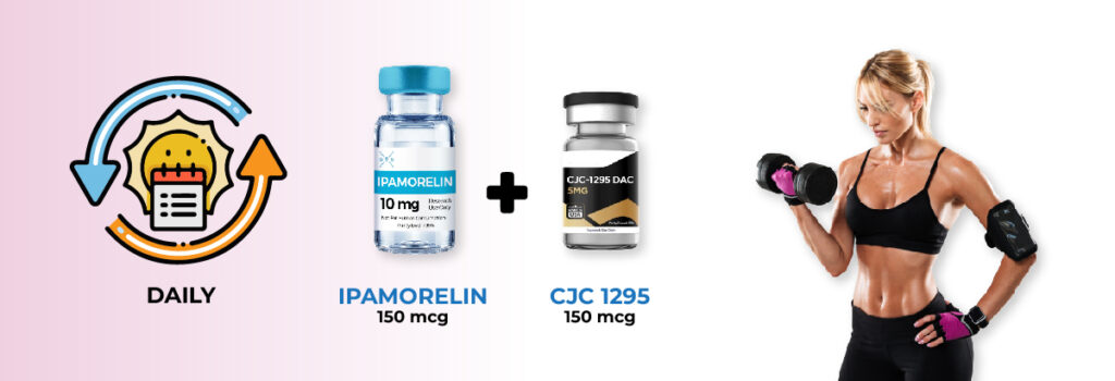 권장되는 복용량은 다음과 같습니다: 이파모렐린과 CJC-1295 각각 하루 150mcg.