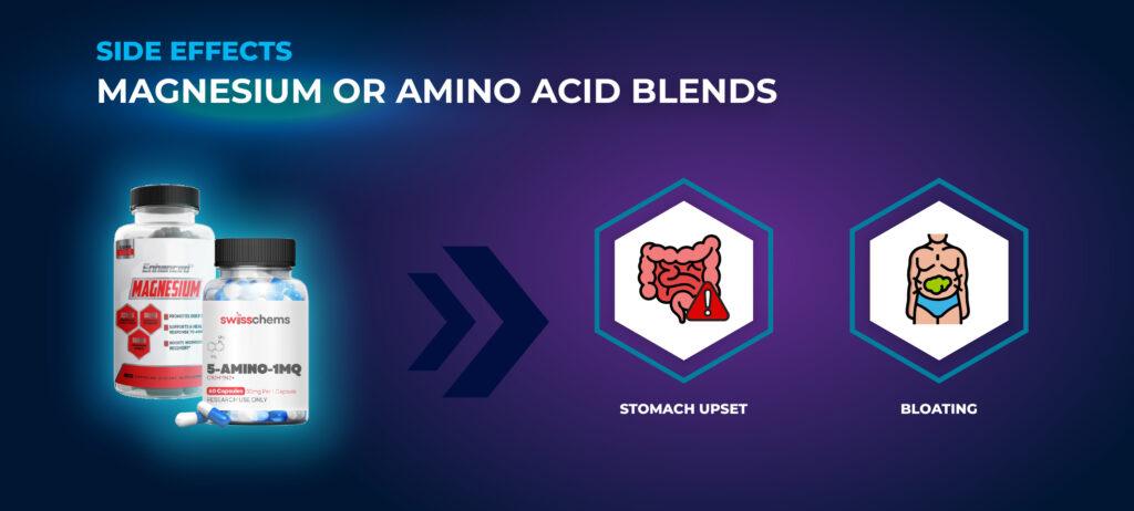 마그네슘 또는 아미노산 혼합물: 충분한 물이나 음식과 함께 섭취하지 않으면 위장 장애, 팽만감 또는 근육 경련을 유발할 수 있습니다.