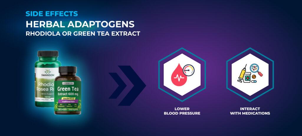 일반적인 부작용으로는 메스꺼움, 두통, 초조함 또는 소화 문제가 있으며, 특히 카페인, 녹차 추출물 또는 강력한 누트로픽과 함께 복용할 때 그렇습니다. 아미노산 또는 허브 아답토겐과 같은 일부 성분은 약물과 상호 작용하거나 혈압에 영향을 미칠 수 있습니다.