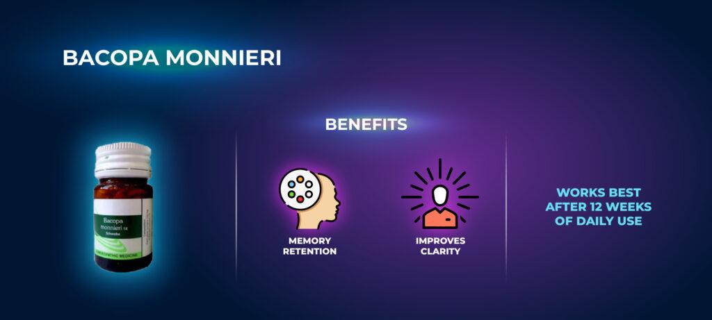 - Bacopa Monnieri supports memory consolidation and sharpened focus over time.
