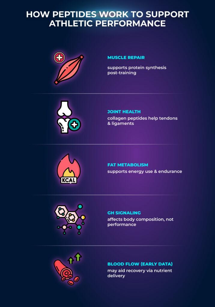 Mitochondrial and metabolic signals. Exercise can raise peptide signals that support energy use. Early data suggest links to improved fat metabolism, better glucose control, and boosting endurance in endurance sports. These pathways may help you sustain work and improve performance in long sessions while you chase peak performance.