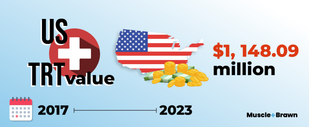 Due to the boom in testosterone replacement therapy, market growth is expected to continue to rise partly due to the benefits testosterone therapy has on sexual function, quality of life, and lean muscle mass.
