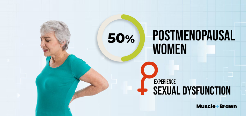 - 50% of postmenopausal women experience sexual dysfunction.