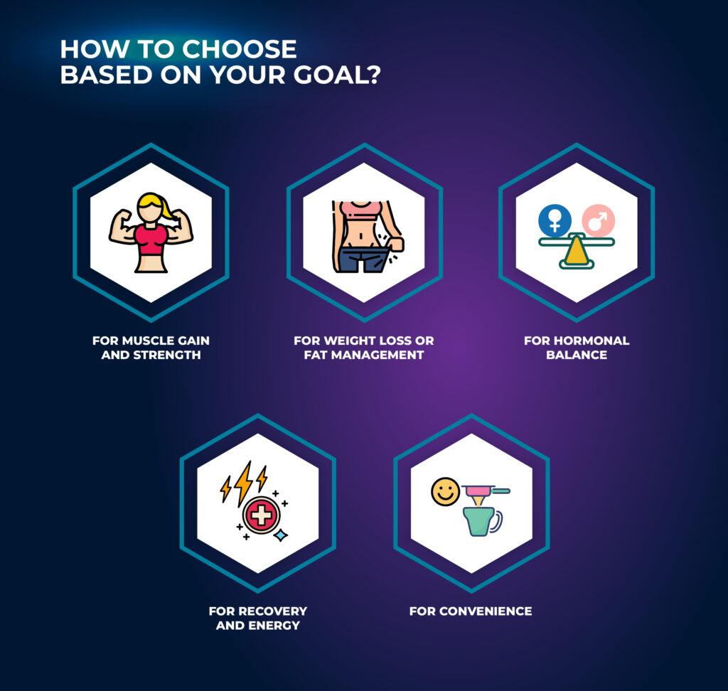- For weight management: Go for a low-calorie, high-protein blend with added fiber.