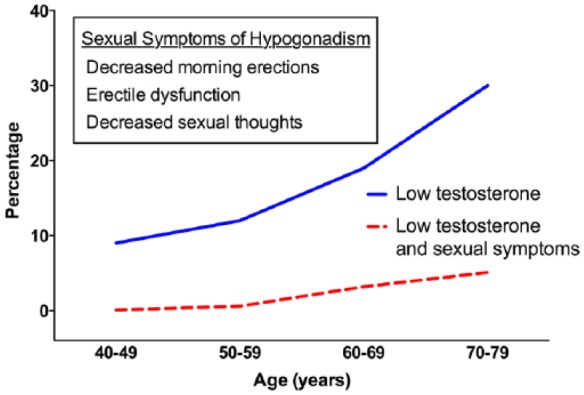Men who have low testosterone levels usually experience a decrease in libido and problems with erectile dysfunction, which is common as men age.