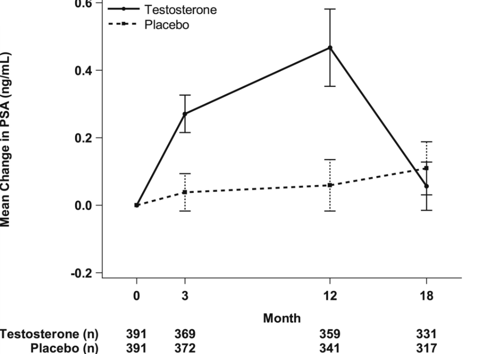 So while there is certainly evidence that testosterone treatment can elevate PSA levels, it does not show to elevate it to a degree that would indicate a cause of prostate cancer.