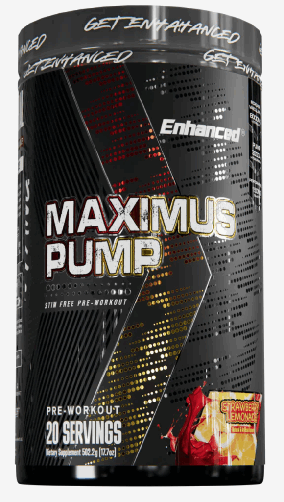 Maximus pump โดย Enhanced Labs – อาหารเสริมก่อนออกกำลังกายไร้สารกระตุ้น
