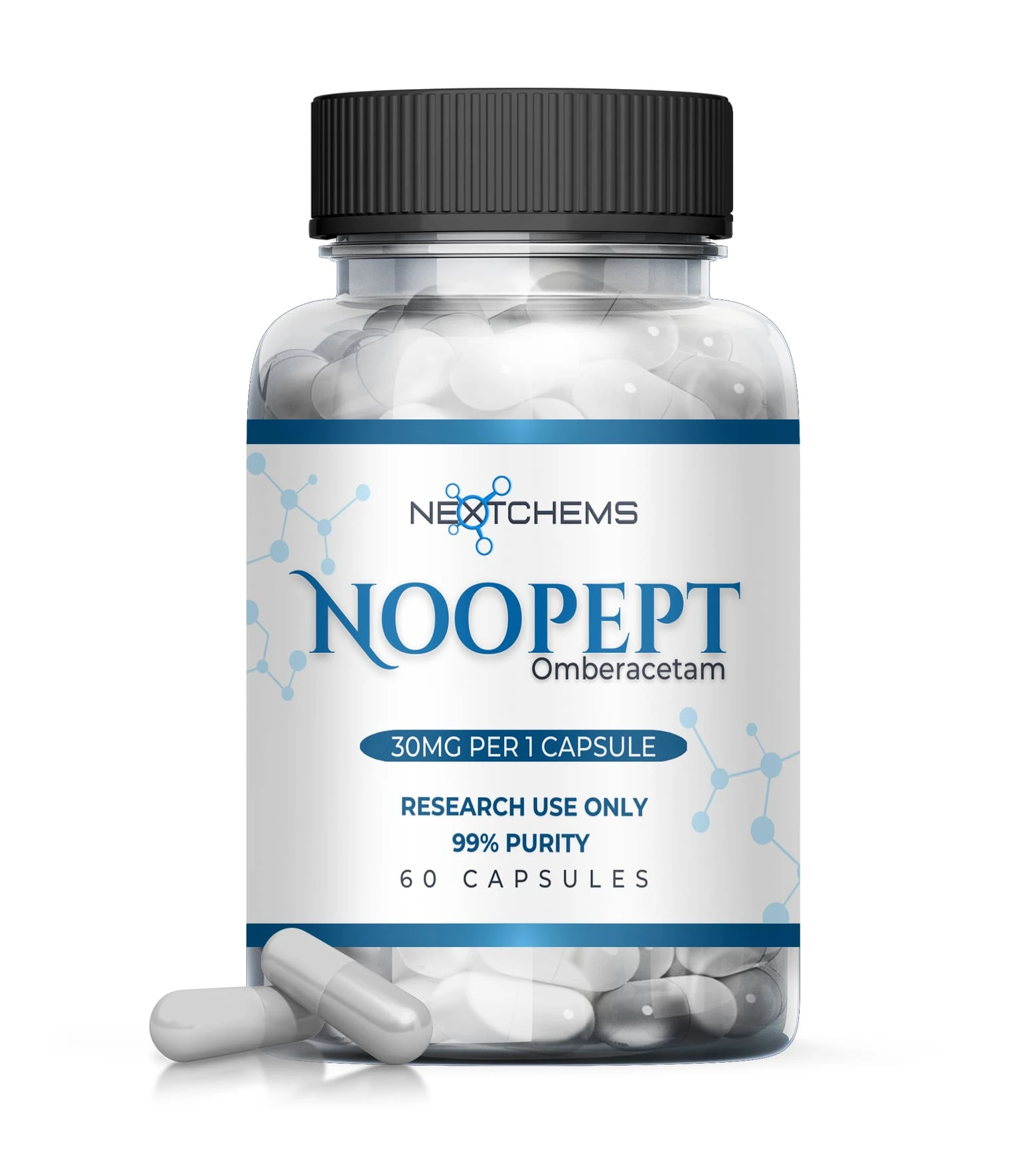 NextChems provides Noopept in 30mg capsules, verified at ≥99% purity, packaged in secure, tamper-proof containers suitable for precision research applications.