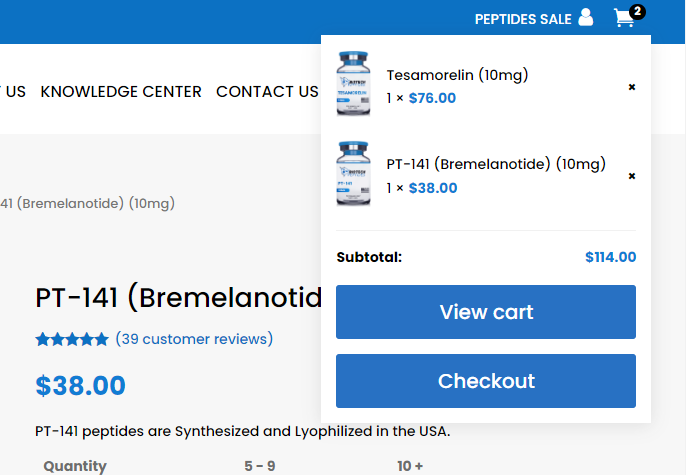 หลังจากเรียกดูผลิตภัณฑ์ 12 อันดับแรกของ Biotech Peptides ตามความนิยม ผมตัดสินใจตรวจสอบ Tesamorelin และ PT-141 เพิ่มเติม ผลิตภัณฑ์ทั้งสองมีคะแนน 5 ดาวจากการรีวิว 27 และ 39 รีวิวตามลำดับ และมีราคาที่ค่อนข้างเหมาะสมเมื่อเทียบกับเปปไทด์อื่นๆ