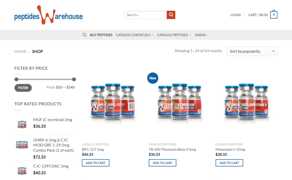 - Peptides Warehouse เป็นร้านค้าปลีกเปปไทด์ที่มีความหลากหลายพอสมควร