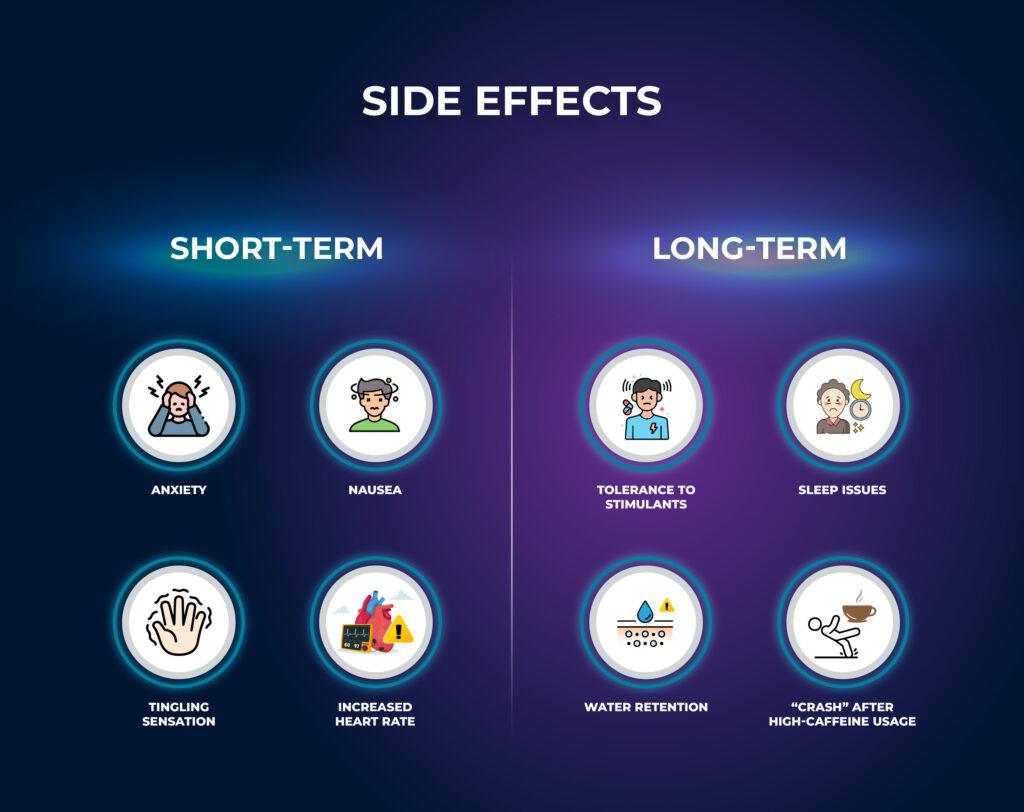 แม้ว่าพรีเวิร์คเอาท์ที่ดีที่สุดจะเป็นเครื่องมือที่ทรงพลังในการเพิ่มมวลกล้ามเนื้อ แต่สิ่งสำคัญคือต้องตระหนักถึงผลข้างเคียงที่อาจเกิดขึ้น เช่นเดียวกับผลิตภัณฑ์เสริมอาหารส่วนใหญ่ ผลิตภัณฑ์เสริมพรีเวิร์คเอาท์อาจก่อให้เกิดผลกระทบระยะสั้นและระยะยาว รวมถึงอาการปวดเมื่อยกล้ามเนื้อ ขึ้นอยู่กับส่วนผสมเฉพาะและความถี่ในการใช้