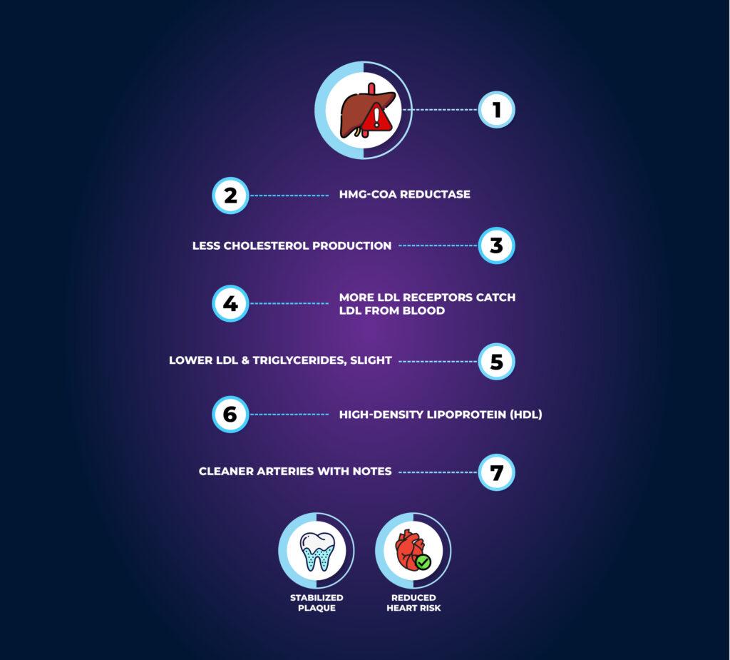 โรซูวาสแตตินเป็นหนึ่งในสารประกอบที่มีประสิทธิภาพมากที่สุดในการลดคอเลสเตอรอลและป้องกันโรคหัวใจ โดยออกฤทธิ์ยับยั้งการผลิตคอเลสเตอรอลในตับ เพิ่มการกำจัด LDL ออกจากกระแสเลือด และบำรุงสุขภาพหลอดเลือด
