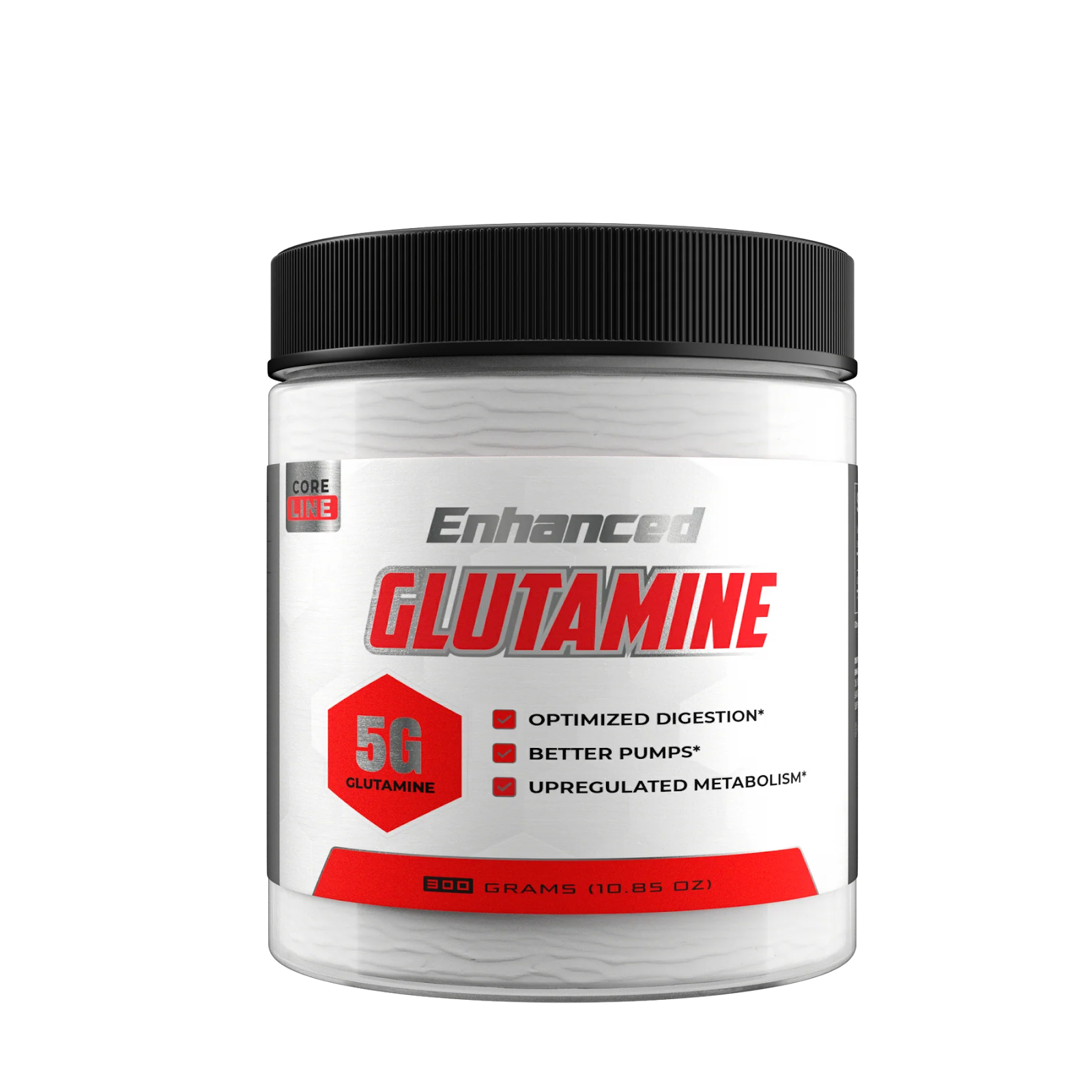 L-กลูตามีนคุณภาพสูงใน Enhanced Labs Glutamine กำหนดมาตรฐานการเสริมการฟื้นฟูโดยเหนือกว่ามาตรฐานความบริสุทธิ์ทั่วไป ปริมาณกลูตามีน 5 กรัมจาก Enhanced นี้เป็นปริมาณที่ได้รับการยืนยันทางคลินิกว่าจำเป็นในการฟื้นฟูระดับกลูตามีนหลังการออกกำลังกายอย่างหนักและความเสียหายของกล้ามเนื้อที่เกิดจากการออกกำลังกาย