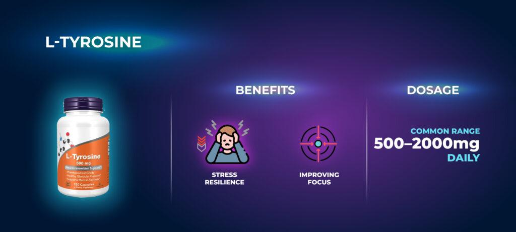 L-Tyrosine และรูปแบบที่ดูดซึมได้ดีกว่าคือ Acetyl L-Tyrosine ช่วยรักษาความชัดเจนทางจิตใจและอารมณ์เมื่อคุณเหนื่อยล้าหรือเครียด พวกมันสนับสนุนการผลิตโดปามีนและนอร์อีพิเนฟริน ช่วยให้คุณมีสมาธิและตื่นตัว Rhodiola Rosea เป็นอีกหนึ่งสารปรับตัวที่ทรงพลัง มันช่วยลดผลกระทบเชิงลบของความเครียดและสนับสนุนเวลาตอบสนอง โดยเฉพาะในช่วงเวลาที่ต้องทำงานยาวนานหรือช่วงเวลาที่มีความกดดันสูง