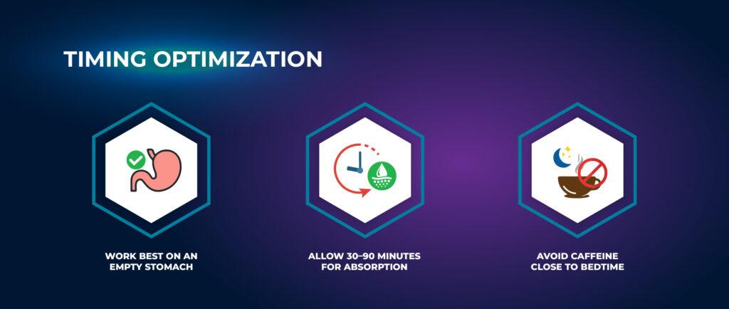 เวลาที่ควรใช้: ดีที่สุดเมื่อรับประทานในตอนเช้าขณะท้องว่างเพื่อสนับสนุนการรู้คิดและความสมดุลทางอารมณ์ตลอดทั้งวัน